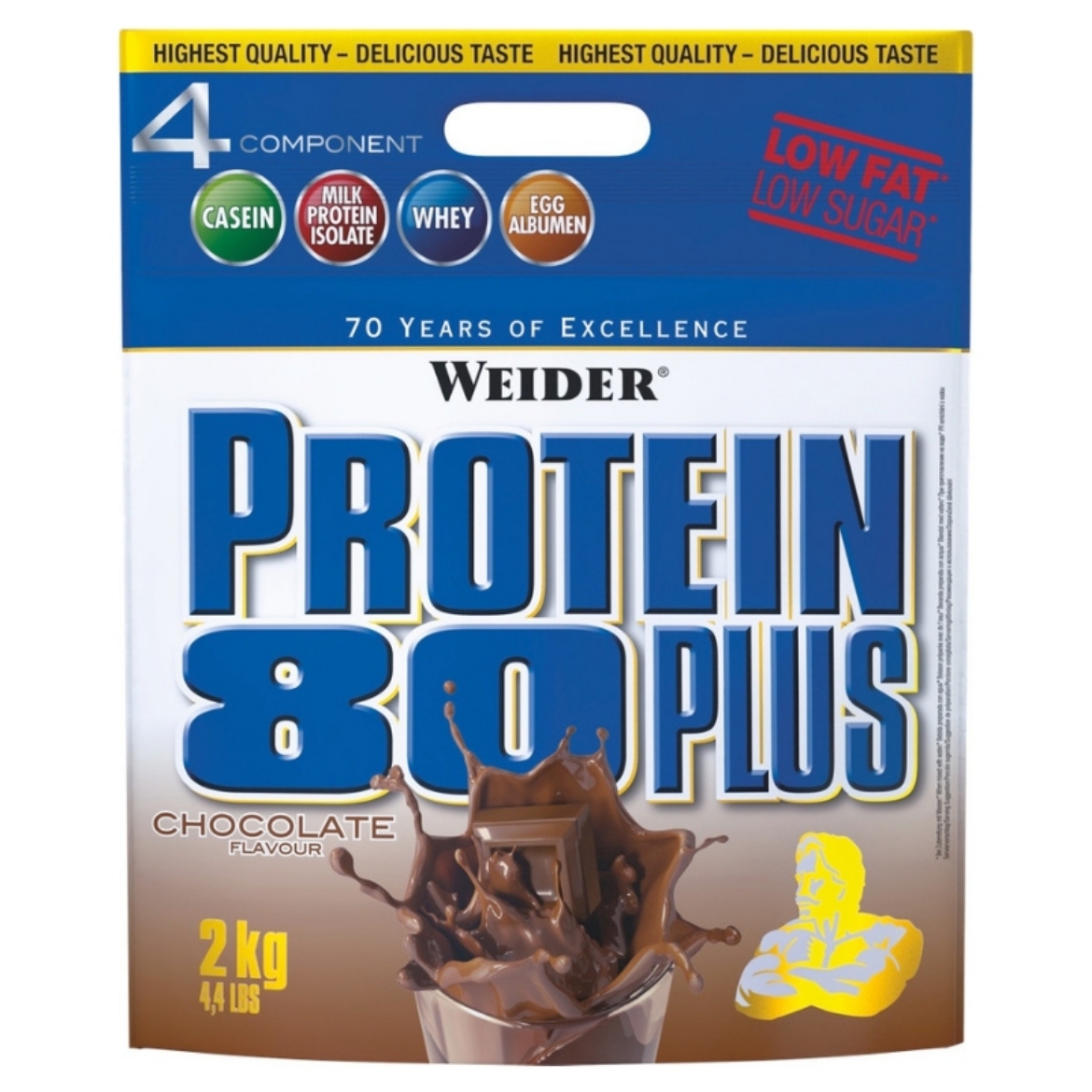 Protein 80 Plus je kombinacija četiri vrste proteina u prahu, čijom kombinacijom su spojene prednosti više vrsta bjelančevina u jednom proizvodu. Njegova prednost je visoka biološka vrijednost, i zahvaljujući tome osigurava bjelančevine s brzom apsorbcijom (sirutka), sa sporom apsorpcijom (kazein) i srednje brzom apsorpcijom (albumin jajeta). Upravo s tim svojstvima on pruža mišićima konstantnu “dostavu” aminokiselina i bjelančevina potrebnih za regeneraciju i rast mišića.